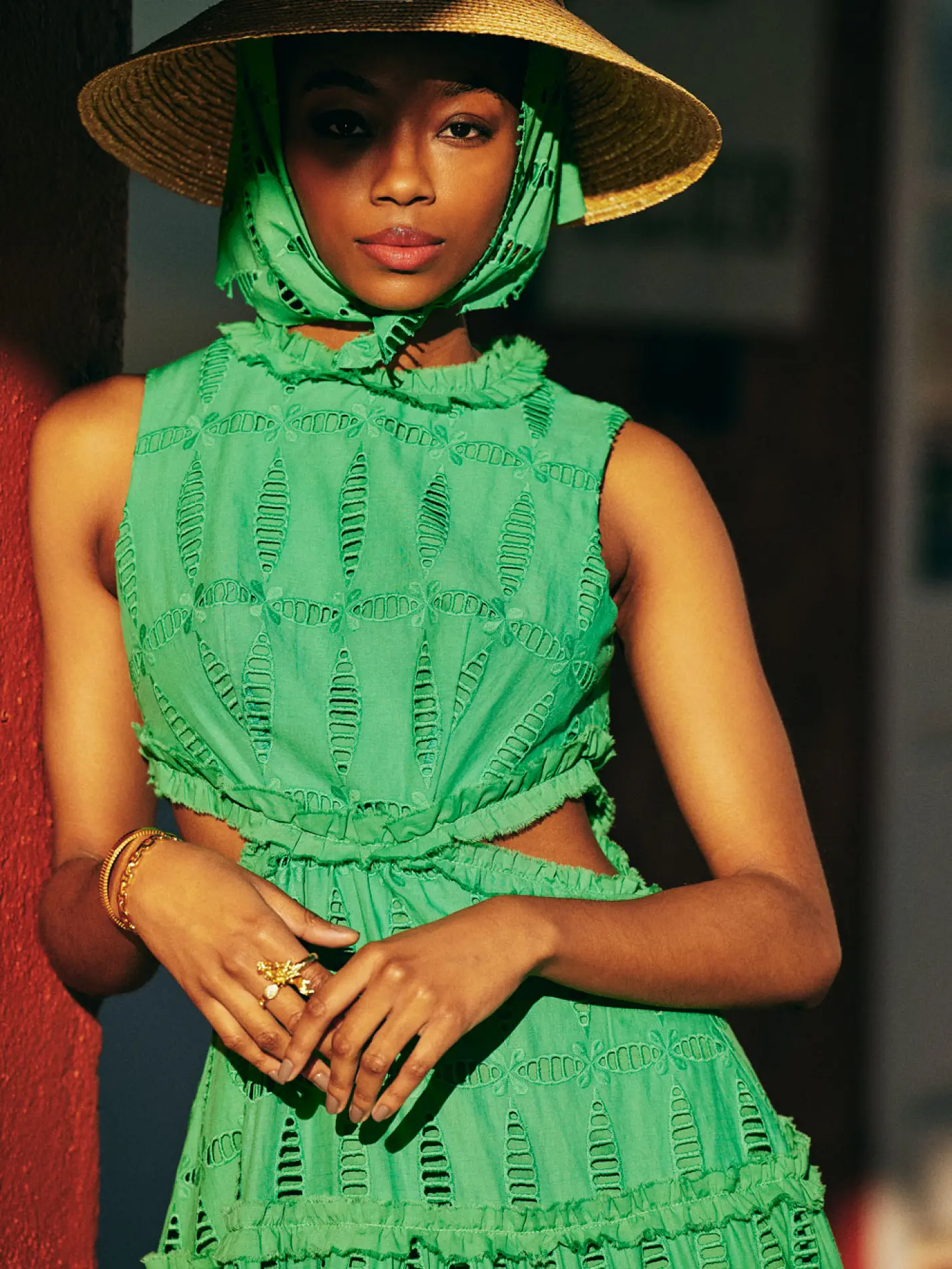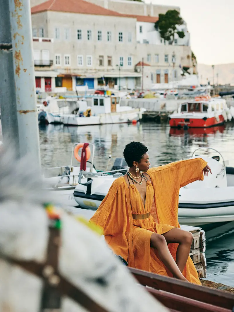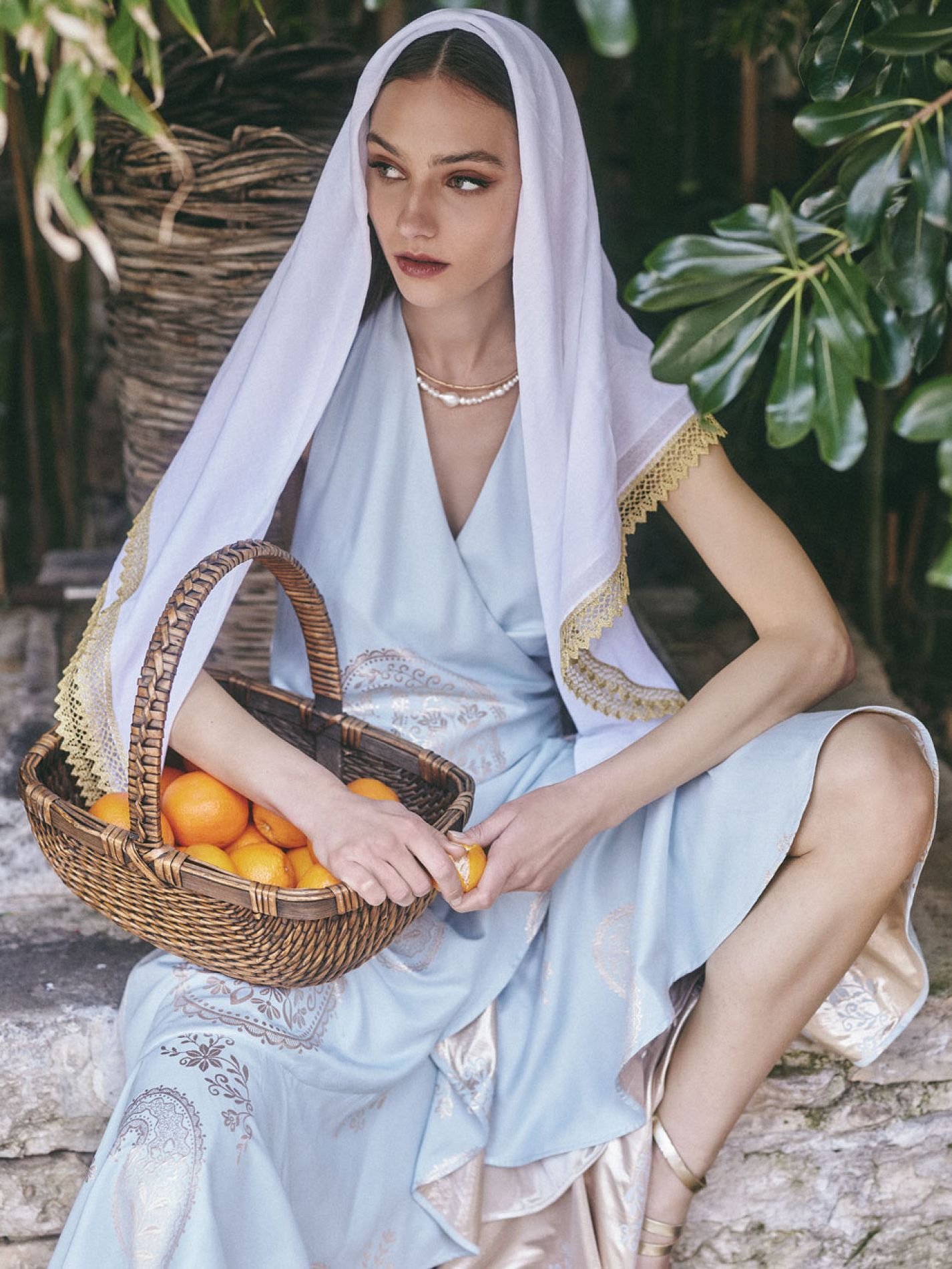 Inspired by Nereids, the sea nymph daughters of Greek mythology, this collection reflects the creation of elegant and delicate pieces where simplicity meets uniqueness and combined with the climate friendly and natural raw materials that are carefully selected and meticulously hand crafted gives us an exquisite result that endures the tests and the trends of time. Experimenting with colorful pallets and distinctive textures each garment is sewn by our local artisans, adorned with love and encompasses the free spirit of Greek attire.